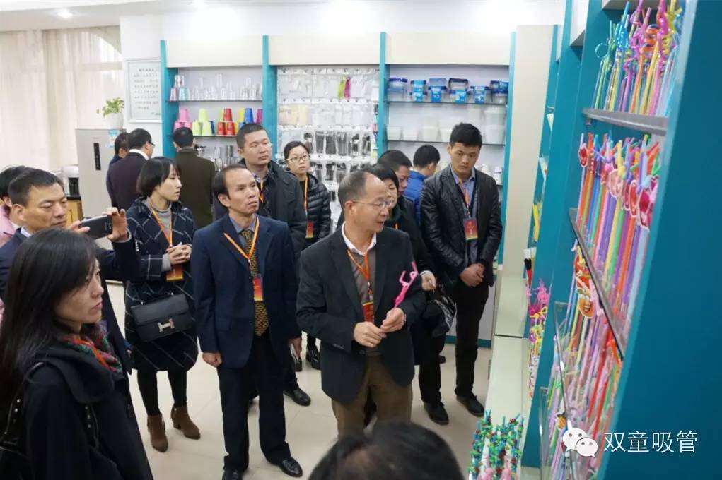 會(huì)員們參觀“雙童吸管”,與樓總交流分享