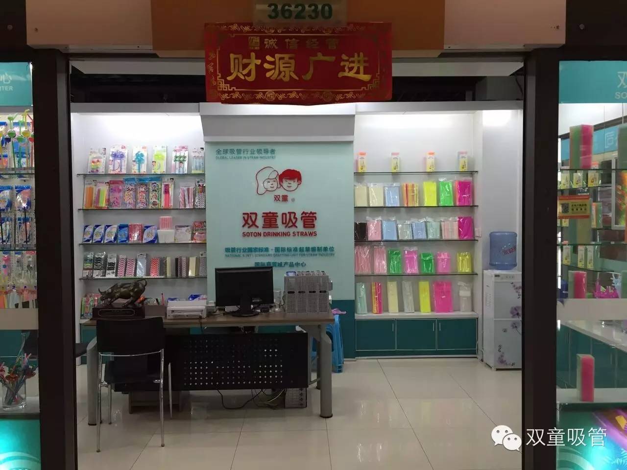 看我們雙童吸管的攤位前面,這大大的“財(cái)源廣進(jìn)”四個(gè)字,真心是好吉利!猴年猴進(jìn)財(cái)!