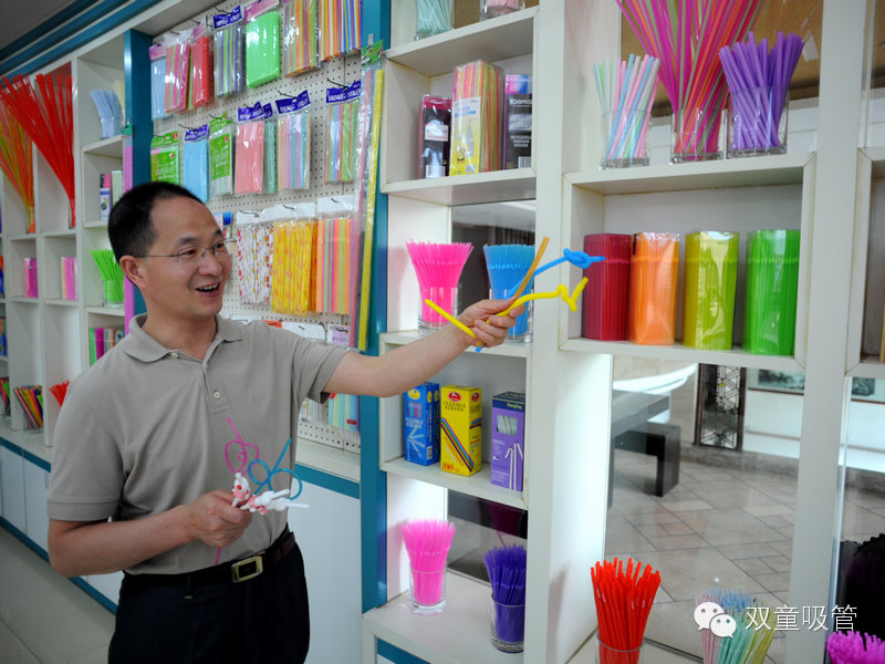 愛心吸管、風(fēng)車吸管、生肖吸管、小鳥吸管、Party吸管……在義烏市雙童日用品有限公司的2樓展廳,五彩繽紛的吸管樣品,讓記者眼花繚亂。