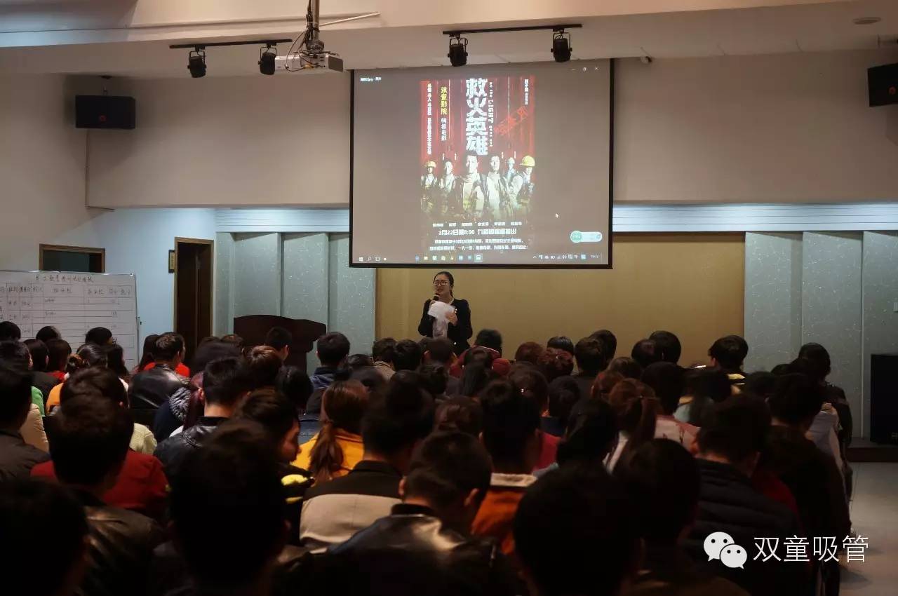 這不,在員工們齊聲誦讀每日一則中學(xué)習(xí)會(huì)也拉開了序幕。吸管妞特地宣傳了3月安全月我們雙童影院特推的電影《救火英雄》,怎么樣?大家是不是很心動(dòng)呢?