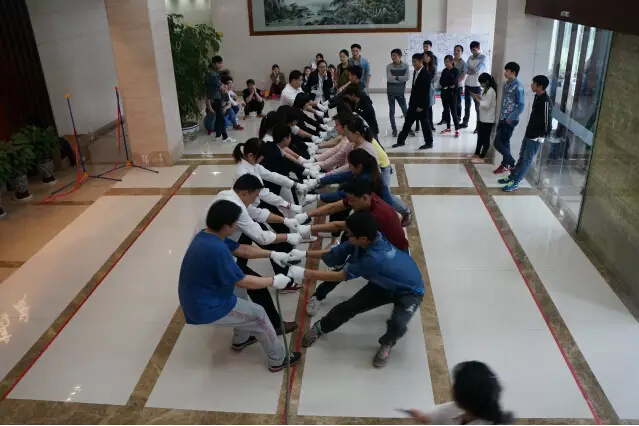 最激動人心的拔河項目就要開始啦!這次我們采用的是左右端拔河的玩法,是不是很新奇呀?看看現(xiàn)場觀眾的反應(yīng)你就知道啦!一二三一二三,隊員們喊著口號,奮力拼搏,看得吸管妞都想放棄主持上場練練手呀!