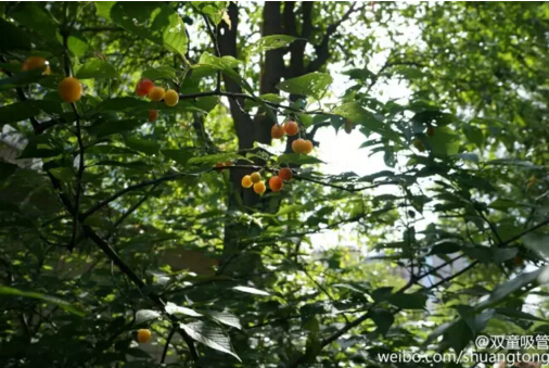 有句老話說得好:“櫻桃好吃樹難栽。”看雙童種下的這幾棵櫻桃樹,多精神,樹上結的果子也是不少呢!看照片,這櫻桃都長到墻外去了!