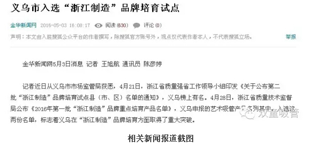 2014年底,浙江在全國率先以標(biāo)準(zhǔn)和認(rèn)證為手段打造首個區(qū)域性公共品牌——“浙江制造”品牌。“浙江制造”標(biāo)準(zhǔn)比國家及行業(yè)標(biāo)準(zhǔn)要求要高,基本達(dá)到國際先進(jìn)、國內(nèi)一流水平。4月28日,浙江省質(zhì)量技術(shù)監(jiān)督局公布《2016年第一批“浙江制造”品牌重點(diǎn)培育產(chǎn)品名單》,我們“雙童”代表義烏申報(bào)的吸管產(chǎn)品名列其中。入選這份名單,標(biāo)志著義烏在“浙江制造”品牌培育方面取得了重大突破。