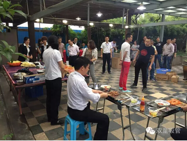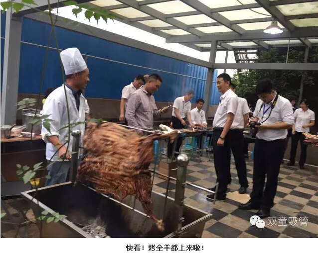 來到屋頂花園,來自我們生產(chǎn)車間的廠長(zhǎng)和三個(gè)車間主任擔(dān)當(dāng)起了為客戶們服務(wù)燒烤的工作,我們的生產(chǎn)和銷售其實(shí)是一條線上的呢!呀!快看!烤全羊都上來啦!