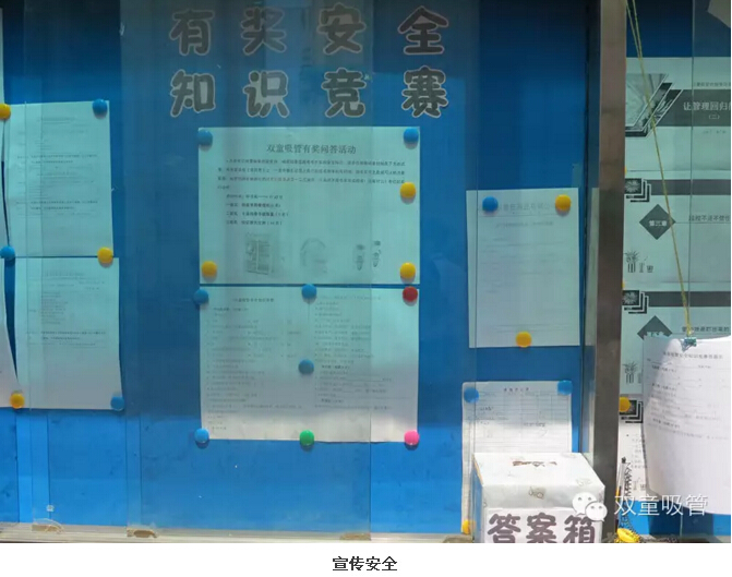 為了讓大家增強安全意識,防患于未然,我們的文宣科分別用黑板報、軟木板、員工活動等形式,用通俗易懂的語言,介紹了有關(guān)于企業(yè)消防安全、企業(yè)生產(chǎn)安全等一系列基本的安全小常識,大大提高了雙童員工對于安全問題的認知!
