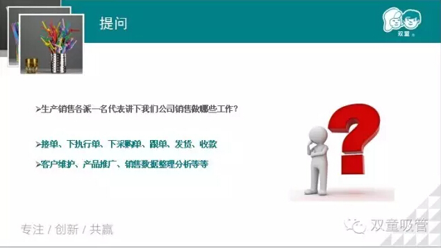 為了鞏固這堂課的內(nèi)容,咱們的朱講師也是讓童鞋們活學(xué)活用,通過一些具體的銷售訂單讓各部門的童鞋們回答自己所要做的工作。通過這次學(xué)習(xí)會,也是為了增進(jìn)各部門之間的溝通,減少工作中的誤會,提高工作效率。