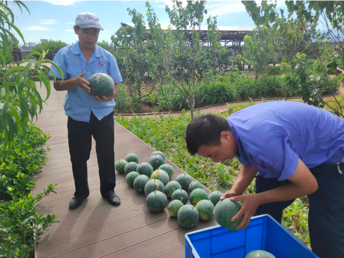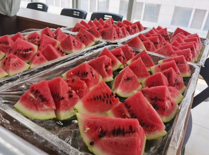 這些西瓜在園丁叔叔的辛勤栽培下,個(gè)個(gè)都長(zhǎng)得是又大又紅。炎炎夏日,來一口清爽的大西瓜,簡(jiǎn)直是夏天最好的儀式!給員工們送上爽口的水果,讓大家不僅吃著甜,更是心里甜!
