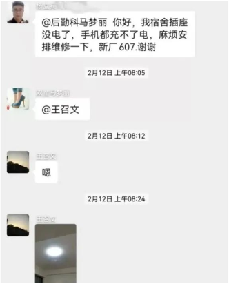 后勤團(tuán)隊(duì)實(shí)時(shí)在宿舍溝通群內(nèi)