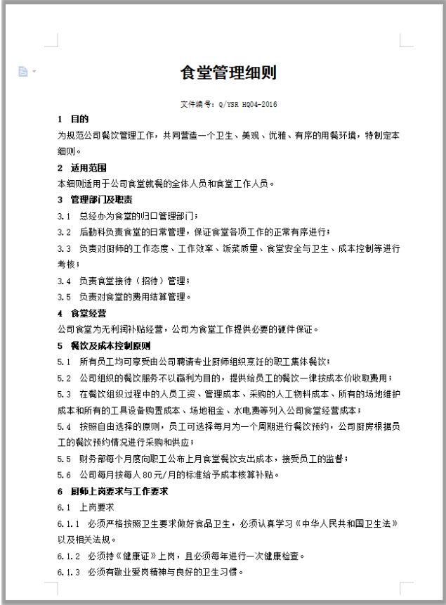 獲取食堂管理規(guī)范文件