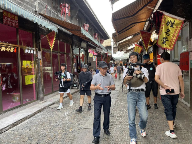 樓仲平在佛堂古鎮(zhèn)與攝制組邊走邊聊