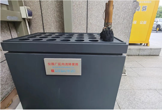 為了確保廠區(qū)內(nèi)部的儲備充足,“雙童”制定了明確的相關(guān)細(xì)則,規(guī)定個人在未經(jīng)允許的情況下禁止將流動雨傘外帶。如情況緊急,確實有需要的可在門衛(wèi)處登記去向并及時歸還,無特殊情況時,原則上流動雨傘僅限廠區(qū)內(nèi)流轉(zhuǎn)使用。