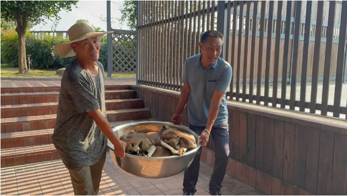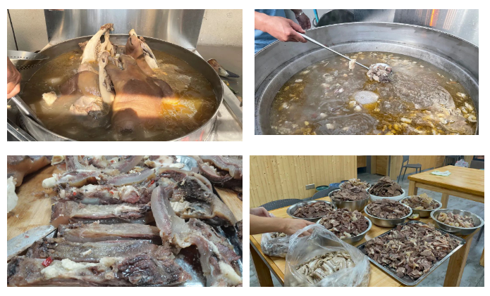 這回聚餐餐桌上的主角是——兩只牛頭!這可足足有上百斤,聽起來(lái)是不是很過(guò)癮呢!