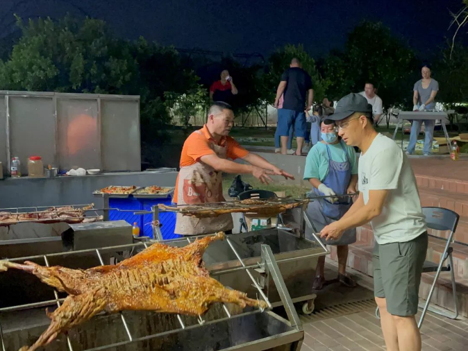 秋意漸起,微風(fēng)習(xí)習(xí),但大家聚在一起,燃燒的火焰和沸騰的熱血讓整個(gè)氣氛依舊火熱!樓總還大展身手烤起了烤全羊,加上孜然美滋滋的!火焰“飛舞”,肉香四溢,專業(yè)范兒十足!