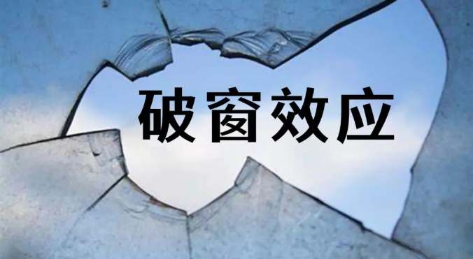 一個(gè)房子如果窗戶破了,沒有人去修補(bǔ),隔不久,其它的窗戶也會(huì)莫名其妙的被人打破;一面墻,如果出現(xiàn)一些涂鴉沒有清洗掉,很快的,墻上就布滿了亂七八糟的筆跡。