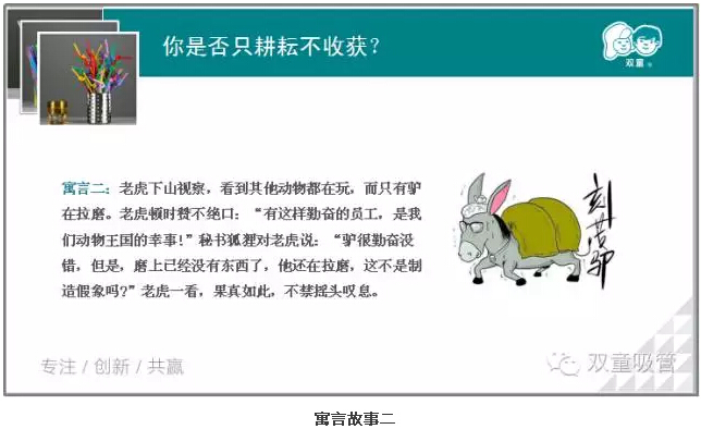 不知不覺,已經(jīng)分享到了最后一個故事。而最后一個故事更是引起了大家的深思。為什么如此勤勞的驢卻沒有評上“勞模”呢?你是保值品還是增值品?見此,童鞋們的學(xué)習(xí)熱情更加高漲啦!