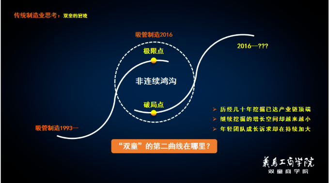 作為一家即將迎來(lái)成立30周年的企業(yè),“雙童”所面對(duì)的困難是一波一波,具有周期性的。初期“雙童”所面對(duì)的挑戰(zhàn)相對(duì)容易,我們用品牌、標(biāo)準(zhǔn)、專利、產(chǎn)品創(chuàng)新來(lái)解決。可近年來(lái),創(chuàng)新紅利已然衰竭,不足以抵擋時(shí)代給“雙童”帶來(lái)的沖擊。