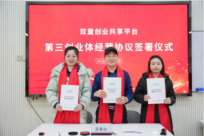 “雙童創(chuàng)業(yè)共享平臺(tái)”經(jīng)營(yíng)協(xié)議簽署儀式