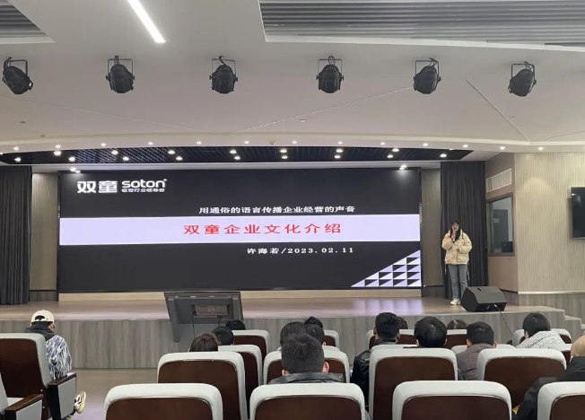 經(jīng)過一段時(shí)間的崗位學(xué)習(xí)之后,不少新員工仍對(duì)“雙童”的廠區(qū)構(gòu)造、企業(yè)文化、規(guī)章制度……有著許多不了解的地方。因此“雙童”舉辦了新員工培訓(xùn)大會(huì),讓小伙伴們能夠更快融入“雙童”。