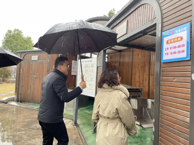 最后便是考核重點——“雙童”的垃圾分類投放房,領(lǐng)導們掀起垃圾蓋,認真負責地查看桶內(nèi)的物品是否符合垃圾分類標準,發(fā)現(xiàn)“雙童”的垃圾投放房不僅干凈漂亮,而且各個垃圾桶內(nèi)的垃圾也投放到位。