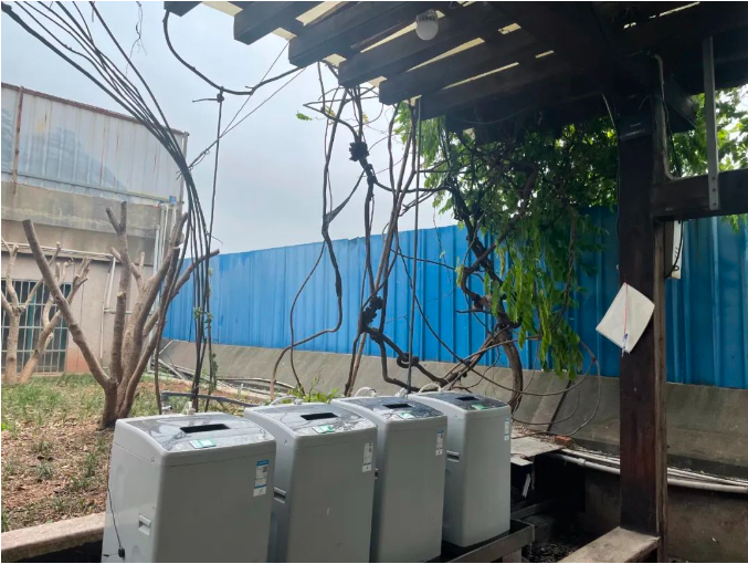 除了二期廠區(qū)之外,2022年6月,“雙童”董事長樓仲平在改造一期廠區(qū)九樓的小花園時,發(fā)現(xiàn)原有的洗衣機已經有些破舊了。為此,樓仲平專門讓公司騰出了一個荒廢的小房間,經過一番加班加點的裝修改造,一間精致整潔的洗衣房就在“雙童”一期廠區(qū)橫空出世啦!