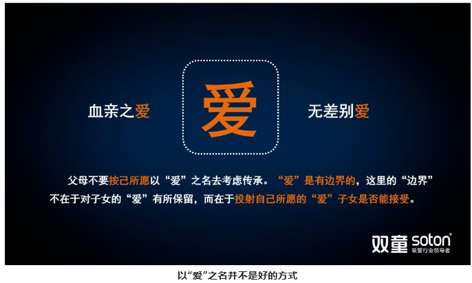 同時(shí),幫助子女去理解財(cái)富的社會(huì)性:我創(chuàng)造的財(cái)富是我的,你創(chuàng)造的是你的。如果我離開這個(gè)世界的時(shí)候還有財(cái)富的剩余,不一定要傳承給子女,可以是捐給社會(huì),或者到大學(xué)設(shè)立基金會(huì),這些都是今天這個(gè)時(shí)代傳承財(cái)富的選擇方式。在這樣的基礎(chǔ)上,去對(duì)“子女是否接班”做出“比較優(yōu)勢(shì)”選擇,是樓仲平為眾多企業(yè)家給出的建議。