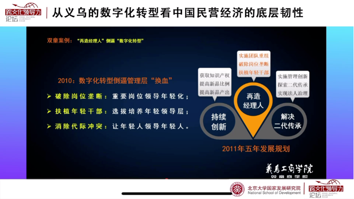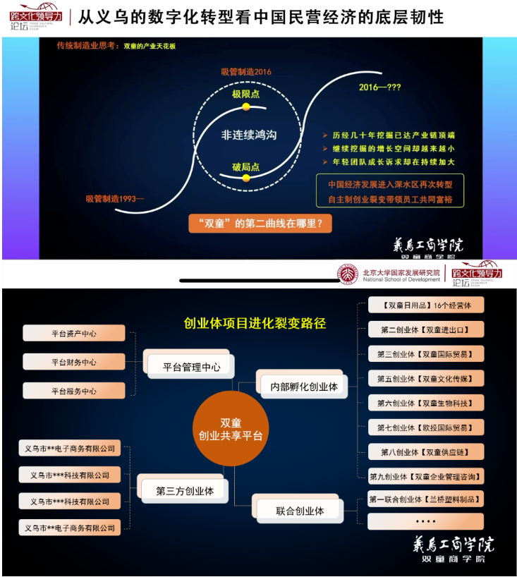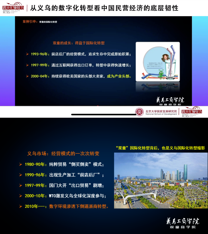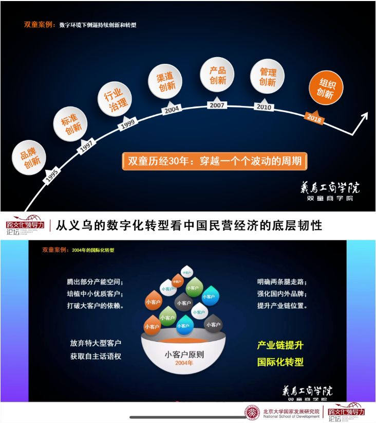近期,“雙童”樓仲平受北大國發(fā)院邀請,在跨文化領(lǐng)導(dǎo)力論壇做線上直播《從義烏的數(shù)字化轉(zhuǎn)型看中國民營經(jīng)濟的底層韌性》課程。這堂直播課上,樓仲平從中國造隱形冠軍的視角,帶領(lǐng)大家感受中國民營經(jīng)濟的國際化轉(zhuǎn)型,及其歷次轉(zhuǎn)型中展現(xiàn)出來的底層韌性。