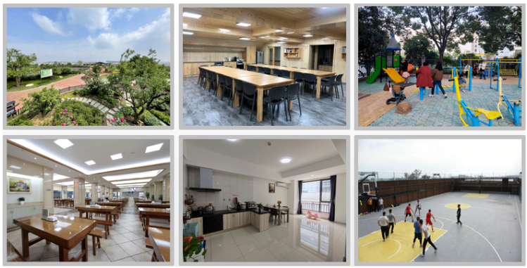 許多員工客觀上存在著夫妻兩地分居、留守兒童等現(xiàn)實困境,考慮到員工在工作之余最大的牽掛就是“家”。“雙童”在修建二期廠房時就融入了社區(qū)生活的元素,投入三千多萬建設(shè)高硬件員工宿舍、員工餐廳、超市、休閑區(qū)、籃球場等場所。鼓勵員工將家人接到公司就住,極大程度解決了員工的后顧之憂,達(dá)成工作生活的和諧統(tǒng)一。▲“雙童”社區(qū)型工廠部分配套設(shè)施