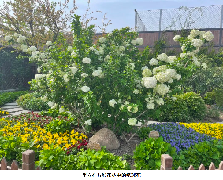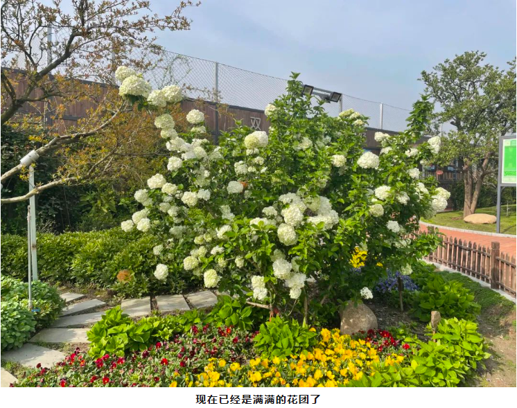 一進(jìn)入“雙童”空中花園,就能看到群花斗艷。在萬紫千紅里,一顆白色的花樹尤其顯眼。繡球花盛開在春季,其余時間都是綠色枝丫。每年的四月是最佳觀賞期,也就是說,現(xiàn)在想一覽好風(fēng)光的可要抓緊時間啦!