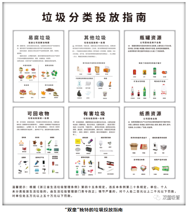 由于“雙童”餐廳的垃圾分類工作十分具有特色,還被浙江衛(wèi)視、義烏電視臺等各大媒體記者戲稱為“雙童‘五個碗’的垃圾分類學(xué)”。除此之外,”雙童“還將餐廳產(chǎn)生的濕垃圾供應(yīng)給養(yǎng)殖戶作飼料回收,從而把企業(yè)所有的濕垃圾全部消滅!