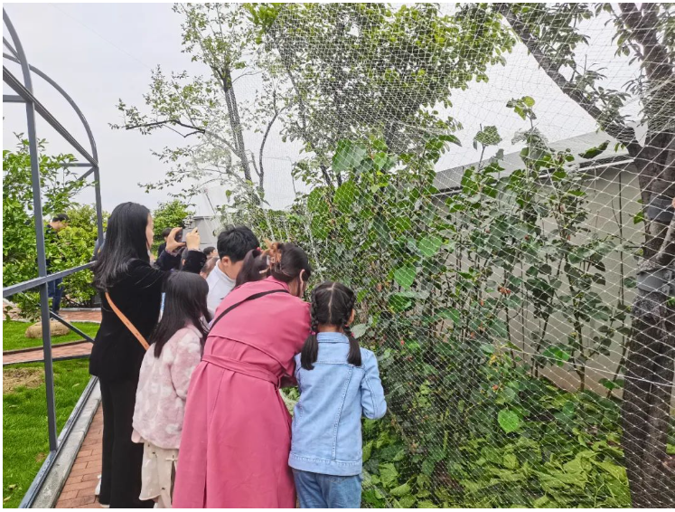 由于“雙童”的生態(tài)環(huán)境優(yōu)美,有不少鳥類喜歡在空中花園盤旋。剛成熟的桑葚美味極了,不少鳥兒都爭先啄食。為了讓更多果實(shí)留存下來,讓員工和遠(yuǎn)道而來的客人們可以品嘗到新鮮美味的果實(shí),園丁叔叔給桑葚林裹上了紗網(wǎng)。