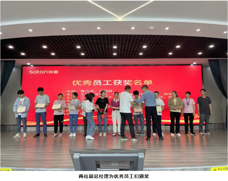 當(dāng)頒獎音樂響起時,“優(yōu)秀員工”們在陣陣掌聲中移步舞臺中央,副總經(jīng)理李秀前、毛斌為其頒發(fā)榮譽證書,這也是公司對一線員工的重視及肯定!當(dāng)聚光燈身上的那一刻,相信對每一位“優(yōu)秀員工”來講都意義非凡,對全體員工來講也是莫大的鼓舞和激勵!