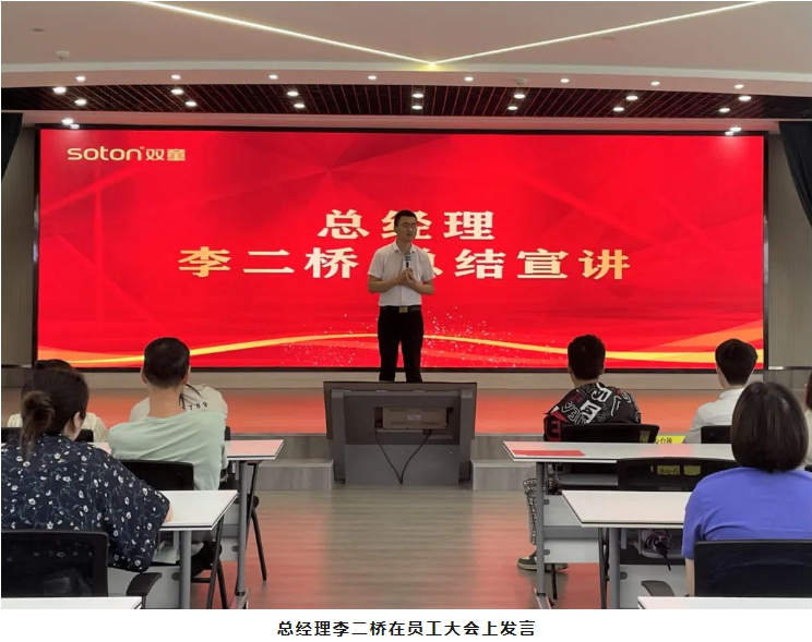 最后,由“雙童”總經(jīng)理李二橋作大會總結(jié)發(fā)言。他表示,在今年國內(nèi)市場環(huán)境不佳,很多企業(yè)經(jīng)營下滑的情況下,“雙童”第一季度營業(yè)額仍保持穩(wěn)步增長,這是大家共同努力的結(jié)果。另一方面,盡管經(jīng)營利潤還沒有實現(xiàn)大幅度增長,公司目前已經(jīng)開始計劃投入近千萬元用于廚房、大會堂、車間設(shè)備等地方的硬件改造,以提升員工生活、工作品質(zhì),李總堅持認(rèn)為,好的硬件環(huán)境更有益于提升員工的整體素養(yǎng)!