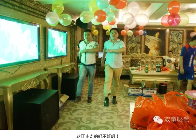 為了讓這次生日會更加歡樂,我們的后勤部門可是承包了KTV里最大的包廂來給壽星們慶生呢!瞧!一到地方,咱們的廠長和二車間主管就先給大伙開嗓啦!一首《咱當(dāng)兵的人》瞬間引爆了全場!說來就來!這兩位當(dāng)過兵的“雙童”漢子給大家走個正步助助興,真不愧是兵哥哥呢!