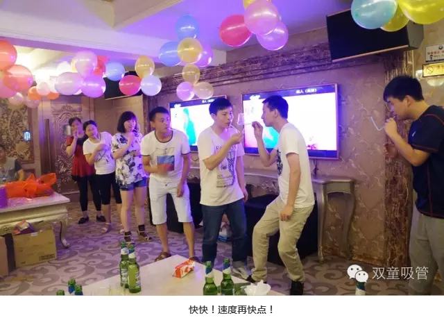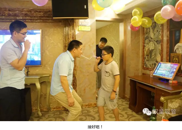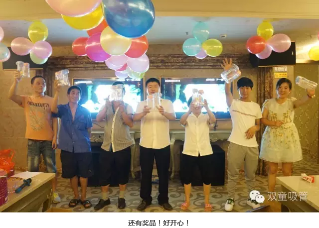 酒足飯飽,開啟游戲環(huán)節(jié)!后勤部門為壽星準備的小游戲,大家可是很踴躍地參與呢!瞧!壽星們被分為四個隊伍,嘴叼著吸管傳杯子,用時最短的隊伍還有豐厚的獎品呢!