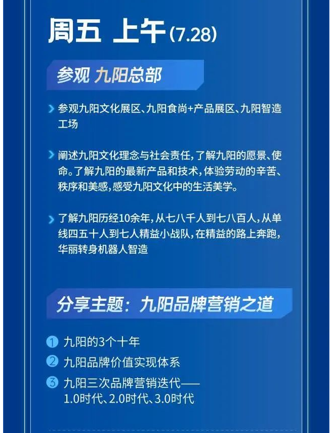 通過參觀展廳和自動化生產線,以及企業(yè)專業(yè)人員講解關于九陽、雙童和義烏小商品城的特色企業(yè)文化,更有思享會全面真實的案例呈現。