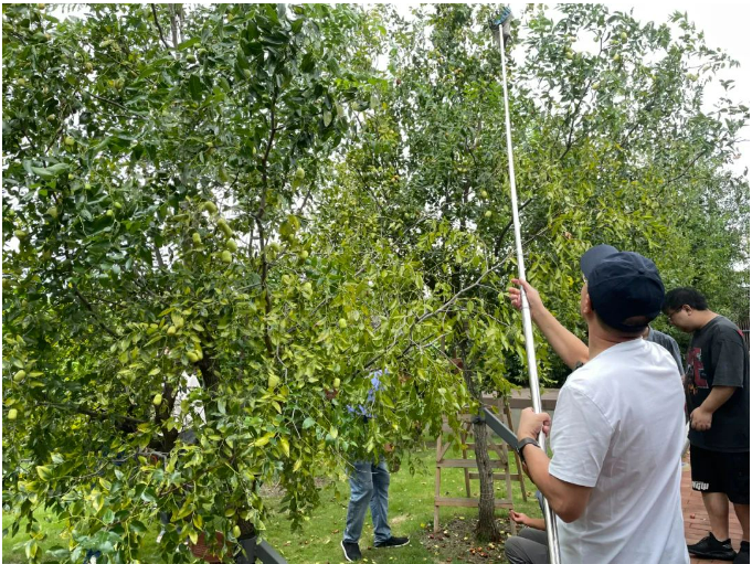 獨樂樂不如眾樂樂!在“雙童”,成熟的果子從來都是大家同享的。聽到樓總要去屋頂打棗的消息,大家早就按捺不住喜悅的心情,三五成群,自發(fā)地提著自己的小籃子加入到“打棗”隊伍中來!