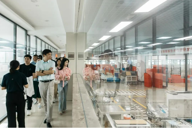 學(xué)員們正近距離參觀“雙童”全封閉無塵吸管車間