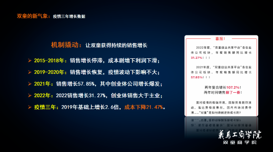在2021年到2022年,兩年時間“雙童”銷售額復(fù)合增長了107.2%。創(chuàng)業(yè)體板塊銷售額已超過主營吸管板塊!相當(dāng)于用創(chuàng)業(yè)平臺“再造”了一個“雙童”!