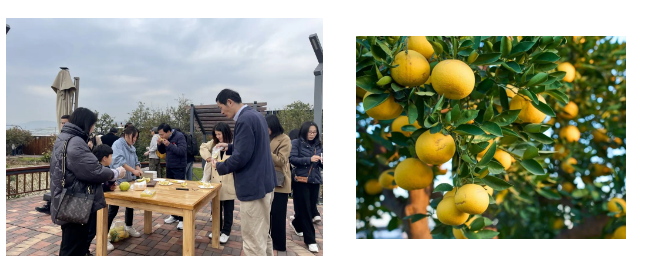 5000平的屋頂花園是雙童綠色工廠的另外一張名片!參觀完地上地下的節(jié)能降耗設(shè)施后,董事長樓仲平帶大家來到了空中生態(tài)園,當(dāng)大家趕到時,“雙童”的工作人員已經(jīng)為大家準(zhǔn)備好了新采摘的胡柚!