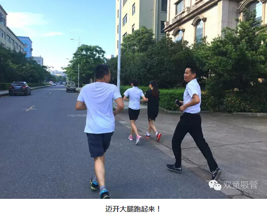 近期,在我們”雙童“內(nèi)部可是掀起了一股“晨跑風(fēng)”呢!每天清晨,原本應(yīng)該陸陸續(xù)續(xù)到辦公室上班的童鞋們早就穿好了運動鞋,活力滿滿地出現(xiàn)在門衛(wèi)處簽到,三三兩兩地繞著廠區(qū)跑起步來!