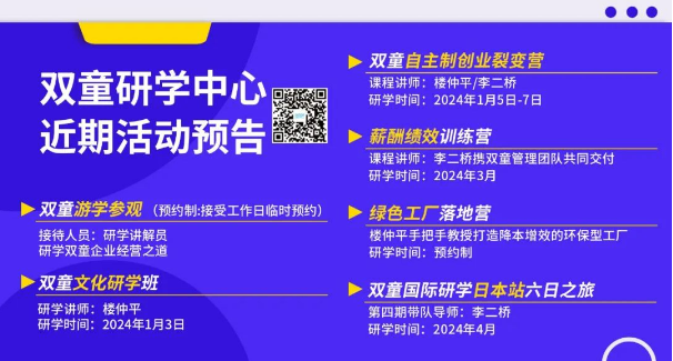 “雙童”憑借自主制創(chuàng)業(yè)裂變機制,已培養(yǎng)了15個創(chuàng)業(yè)體和21個經(jīng)營體,賦能了一大批優(yōu)秀管理者向創(chuàng)業(yè)者的轉(zhuǎn)變。在游學(xué)過程中,將會帶學(xué)員們走進各創(chuàng)業(yè)體工作現(xiàn)場,并邀請創(chuàng)業(yè)體總經(jīng)理現(xiàn)場交流組織變革的實操經(jīng)驗、解答疑惑。