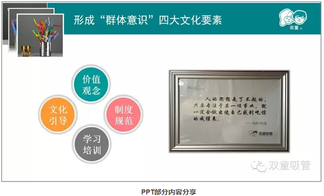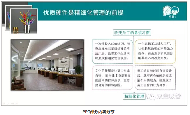 學習會進行到最后,當家人樓總說道:“其實形成好的習慣并不難,細節(jié)的東西,單就一件事情不難做,關鍵在堅持;簡單事情重復做就形成習慣,好的習慣逐漸形成就演變成了企業(yè)文化,久而久之就形成企業(yè)核心競爭力。其實是“細節(jié)”成就了“雙童”!”
