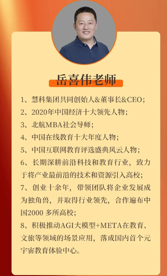 本模塊《創(chuàng)業(yè)者成長(zhǎng)》主題課程,將由慧科集團(tuán)創(chuàng)始人&CEO岳喜偉老師與“雙童”創(chuàng)始人,也是該課程的發(fā)起人樓仲平老師共同完成交付,為同學(xué)們賦能!
