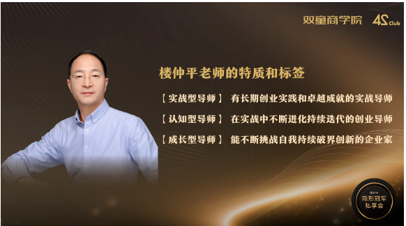 而企業(yè)持續(xù)發(fā)展過(guò)程中漫長(zhǎng)的冠軍之路,就需要標(biāo)桿企業(yè)和良師益友的指引與陪伴,同時(shí)具備實(shí)戰(zhàn)型、認(rèn)知型、成長(zhǎng)型特質(zhì)的老師是不二選擇,而樓仲平老師恰恰具備了上述各項(xiàng)的所有條件。