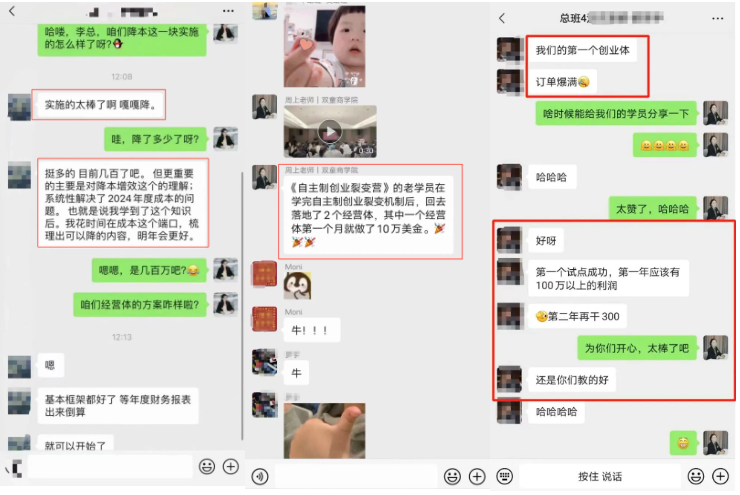 為了能夠助力更多中小企業(yè)也能運用這套機制實現(xiàn)快速增長,雙童商學院早在2022年,雙童商學院就針對該機制打磨成《自主制創(chuàng)業(yè)裂變營》課程,并不斷地升級迭代,該課程已經(jīng)是一套非常成熟的、可復制、可實踐的課程,完全契合中小微創(chuàng)業(yè)者的需求,報名人數(shù)也從原來的幾十人變成現(xiàn)在期期爆滿的“百人團”!