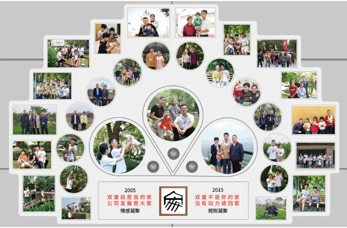 所以我自己會思考一個問題:工廠能不能不要成為一個冷冰冰的工廠?能不能充滿著一些溫度?能不能有更多的笑聲?能不能由一個一個小小的家庭組成一個更大的家庭?雙童為什么在2002年、2003年之后投入了五六千萬去建員工的寢室大樓,前前后后我們建了兩萬多平方米,1000多個房間的員工寢室樓。然后把傳統(tǒng)的工廠建設(shè)成像一個大花園一樣,各種設(shè)施,籃球場、網(wǎng)球場,小孩的娛樂區(qū)、健身區(qū),甚至我們出臺了一些看似是極不合理的企業(yè)規(guī)范,鼓勵他們在企業(yè)談戀愛,鼓勵他們在企業(yè)生小孩、成家立業(yè)。甚至鼓勵他們把戶籍遷到義烏,鼓勵員工帶老人來公司里照顧小孩。