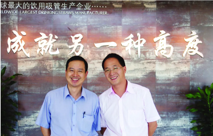 第二天早上,他就背著電腦從他租的房子里搬到我工廠來。當(dāng)時我的工廠還很小,七八十人,但就因為他的引進(jìn),完全改變了雙童!那一年雙童從內(nèi)貿(mào)轉(zhuǎn)到外貿(mào),利潤率大幅提高!因為他的英語、數(shù)字化應(yīng)用這些東西都很熟練,我們兩個人搭檔強強聯(lián)合,“雙童”在99年、00年、01年這三年,每年都能翻一番!因為吸管結(jié)緣,惺惺相惜
