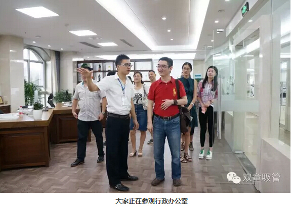 一到“雙童”的行政辦公室,大家對這樣細膩簡約、極致精細的辦公環(huán)境很好奇。二當家李二橋向大家介紹“雙童”的七八十號行政員工都在這里進行集中辦公,聽到這里,大家都紛紛稱贊“雙童”和諧開放的辦公氛圍。