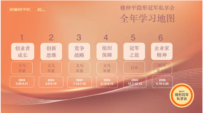 《樓仲平隱形冠軍私享會》在交付過程中,會根據(jù)“開門”、“破圈”、“取舍”、“進(jìn)化”、“出發(fā)”、“開悟”等6個模塊的不同主題,每期邀請一位飛行嘉賓與樓仲平老師一起完成,引導(dǎo)各位同學(xué)不斷打開思維,實現(xiàn)一次次成長蝶變。