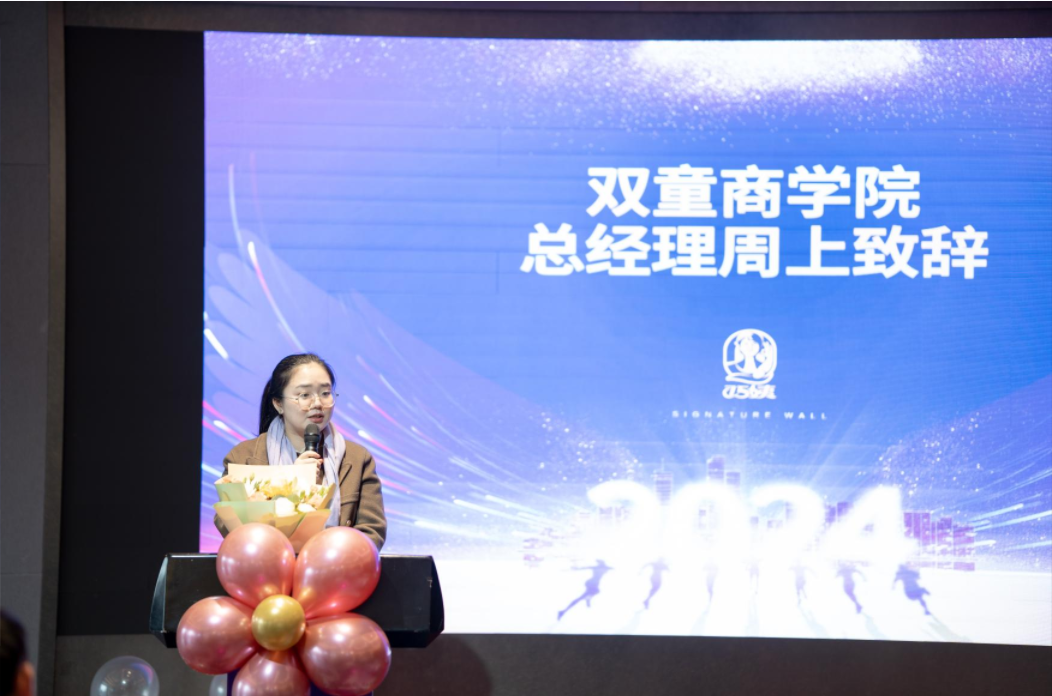04| 終于,在多次入企調(diào)研和診斷后,“巧姨”創(chuàng)業(yè)共享平臺成立儀式于2023年底正式開啟,雙童商學(xué)院執(zhí)行院長周上趕往儀式現(xiàn)場致辭、祝賀!